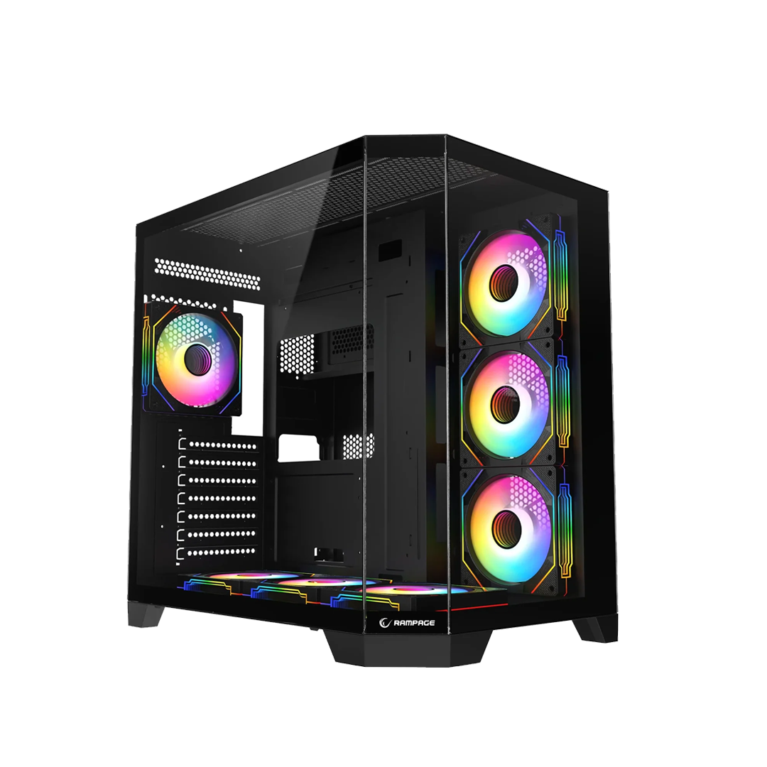Rampage MEGA V1 850W 80 Plus Bronze 3 Sides Temp. Glass 7x12cm ARGB Fan Controller Black Gaming Case
